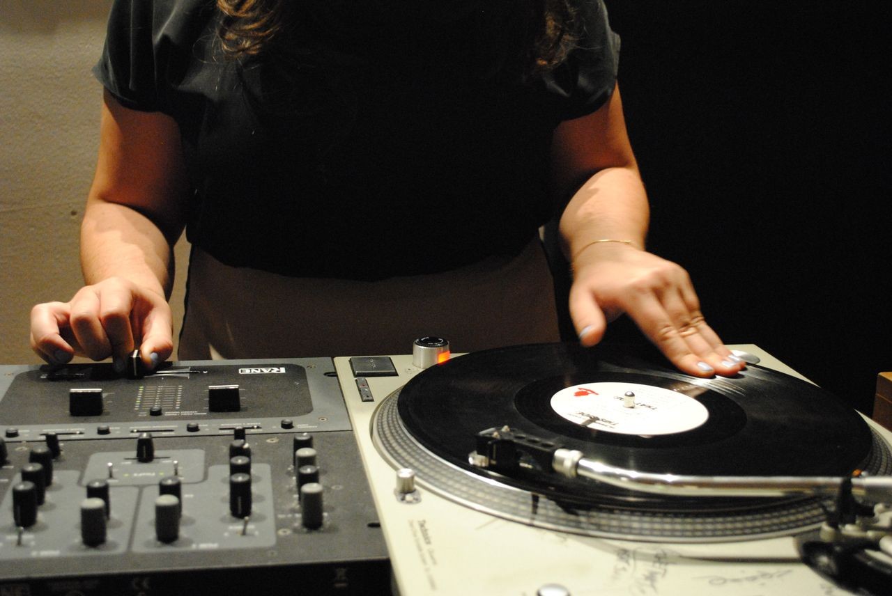 Το DJing δημιουργήθηκε το 1975-1978 και χρησιμοποιήθηκε στην αρχή για να έχουν ρυθμό οι B-Boy και μετά για να λένε πάνω στο ρυθμό των μπιτ τους στίχους τους οι ράπερ. Ο πρώτος DJ ήταν ο Kool Herc: με την απομόνωση κομματιών από διάφορους δίσκους και την ανάμιξή τους δημιούργησε τον ήχο του Χιπ-Χοπ. Αργότερα, η δεύτερη γενιά των Hip-Hop DJ και οι μετέπειτα γενιές με πολλές καινοτομίες όπως η μίξη δύο τραγουδιών σε ένα έφτασε τους DJ σε αυτό που είναι σήμερα. Οι DJ ήταν τα αστέρια του Χιπ-Χοπ τα πρώτα χρόνια αλλά από το 1978 και μετά τα φώτα έκλεψαν οι MC.Djing